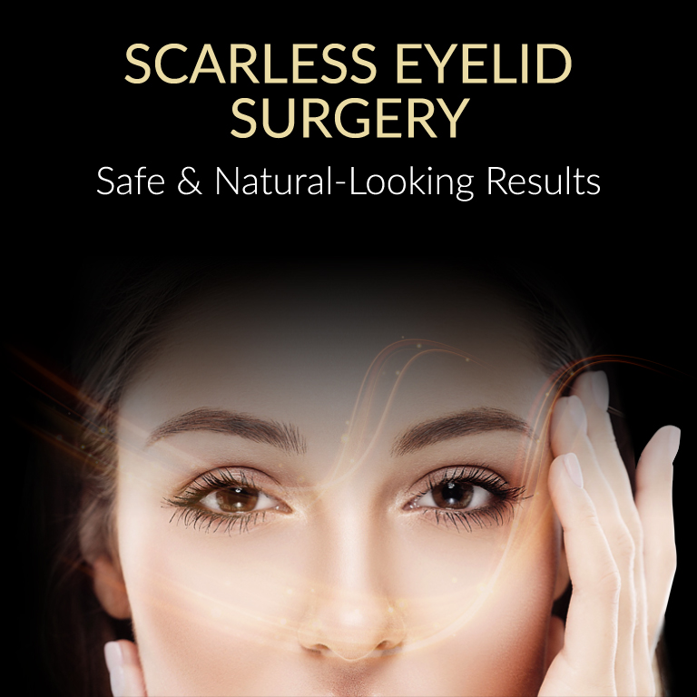 For double-eyelid creation, the techniques include either suture blepharoplasty or incision upper blepharoplasty. Suture blepharoplasty (scarless double eyelid creation) is suitable for younger patients with minimal skin or fat excess. Usually three well-aimed sutures are placed in each eyelid, with technique and surgical precision being of utmost importance. The downtime is around 3-5 days as no cutting is involved.